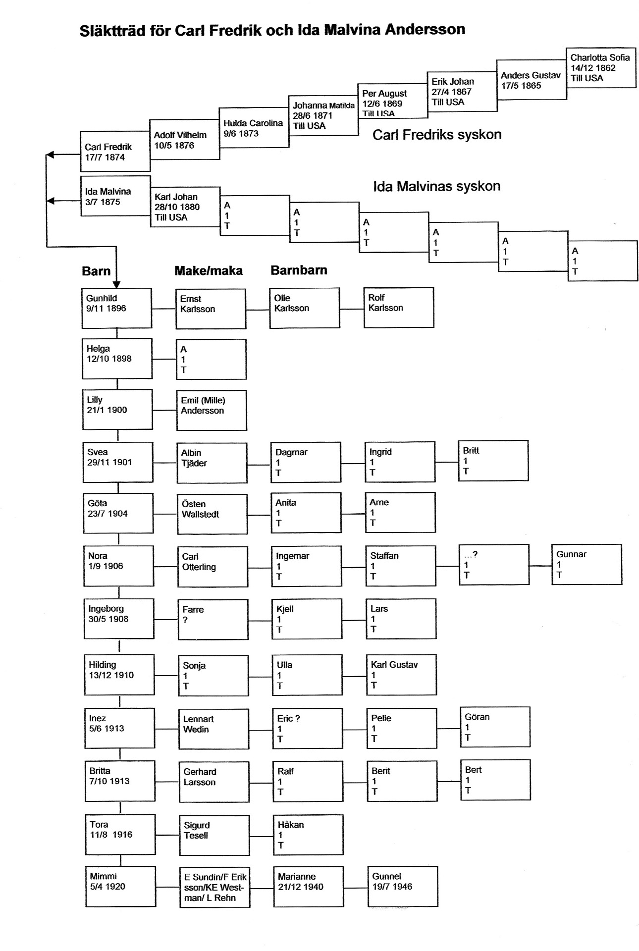 Ida föddes 3/7 1875 och dog 24/9 1958. Under deras liv tillsammans kom de, pga byte av arbete, att byta bostadsort flera gånger innan de till slut stannade i Pålsboda. Idas och Carls äktenskap varade i drygt 63 år och efter det långa äktenskapet blev Carl ensam tills han dog i mars 1967.